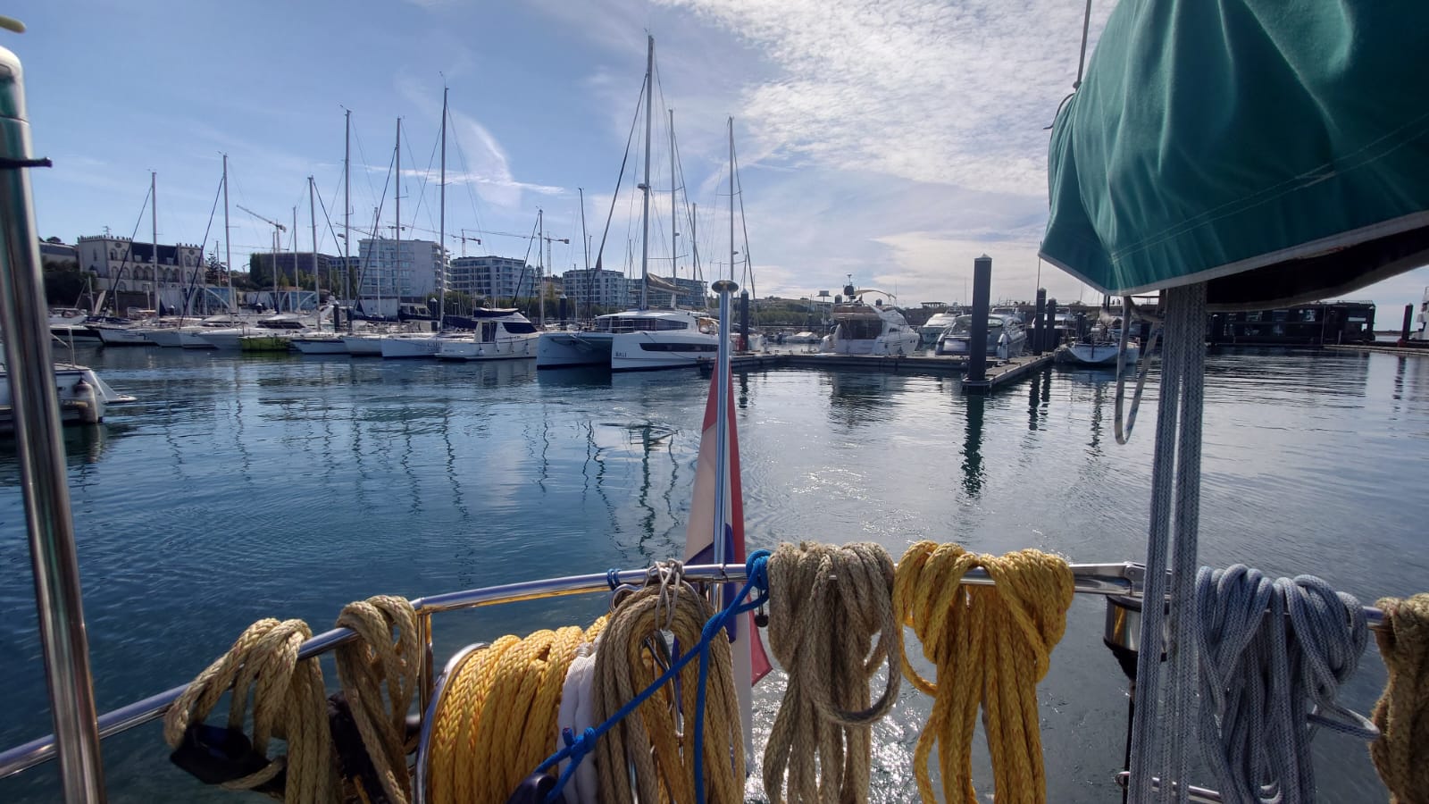 When we get close to Porto, the swell increases and we decide to do full safety preparations for entering the harbor in case it gets tricky. We put on our foul-weather jackets, deck vests (personal flotation devices) with life lines hooked in. We close and batten down the companionway. Like this, we can handle any sea. 👊🏻🌊 But all is calm and we have arrived!!!!