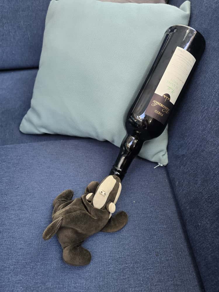 Ha, you think Sher and Wim and their friends were the only ones tasting port wine in Porto? Noooo…. There’s always a little drop or two left in the bottom of the bottle, and an industrious little badger can get the last of it!