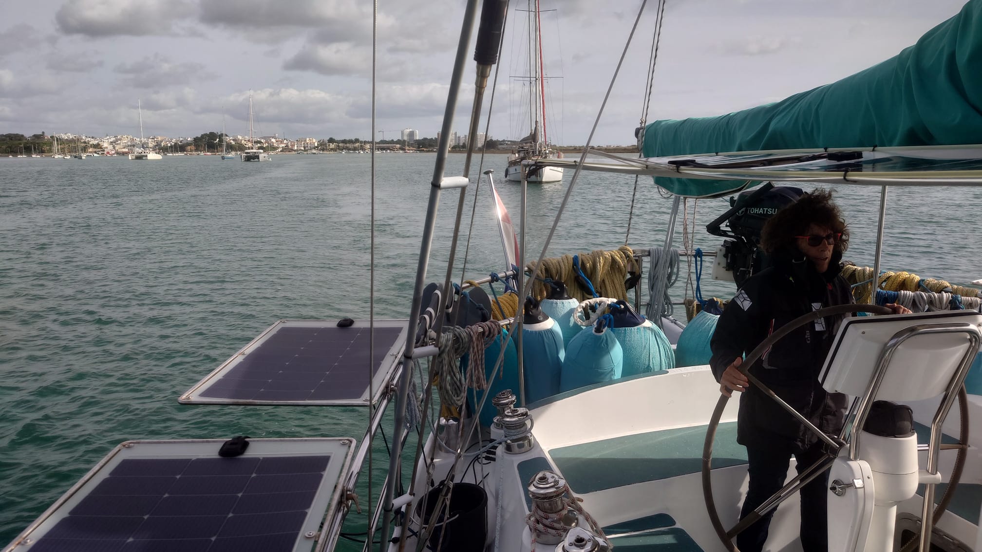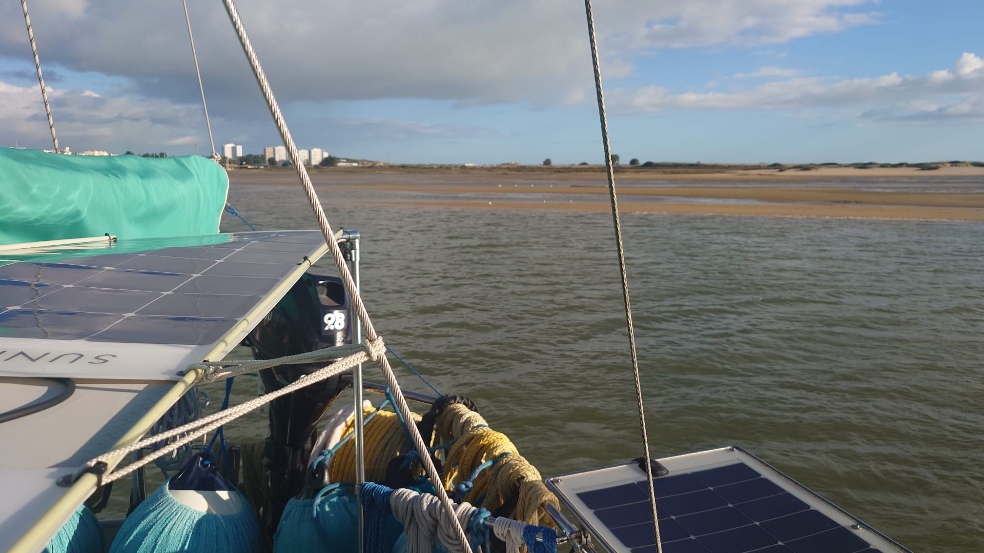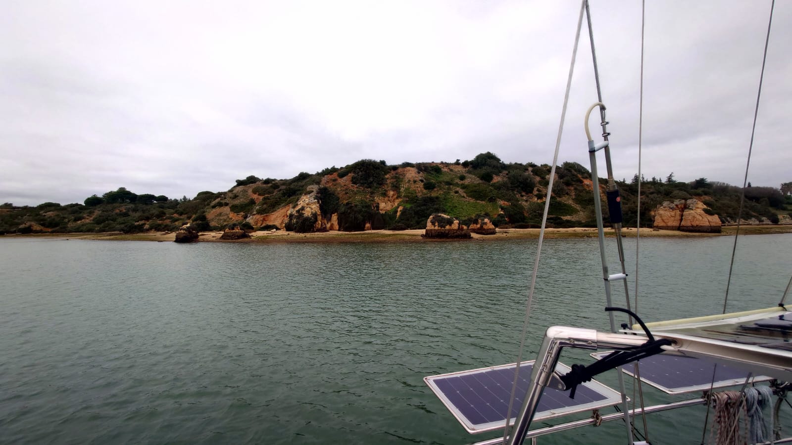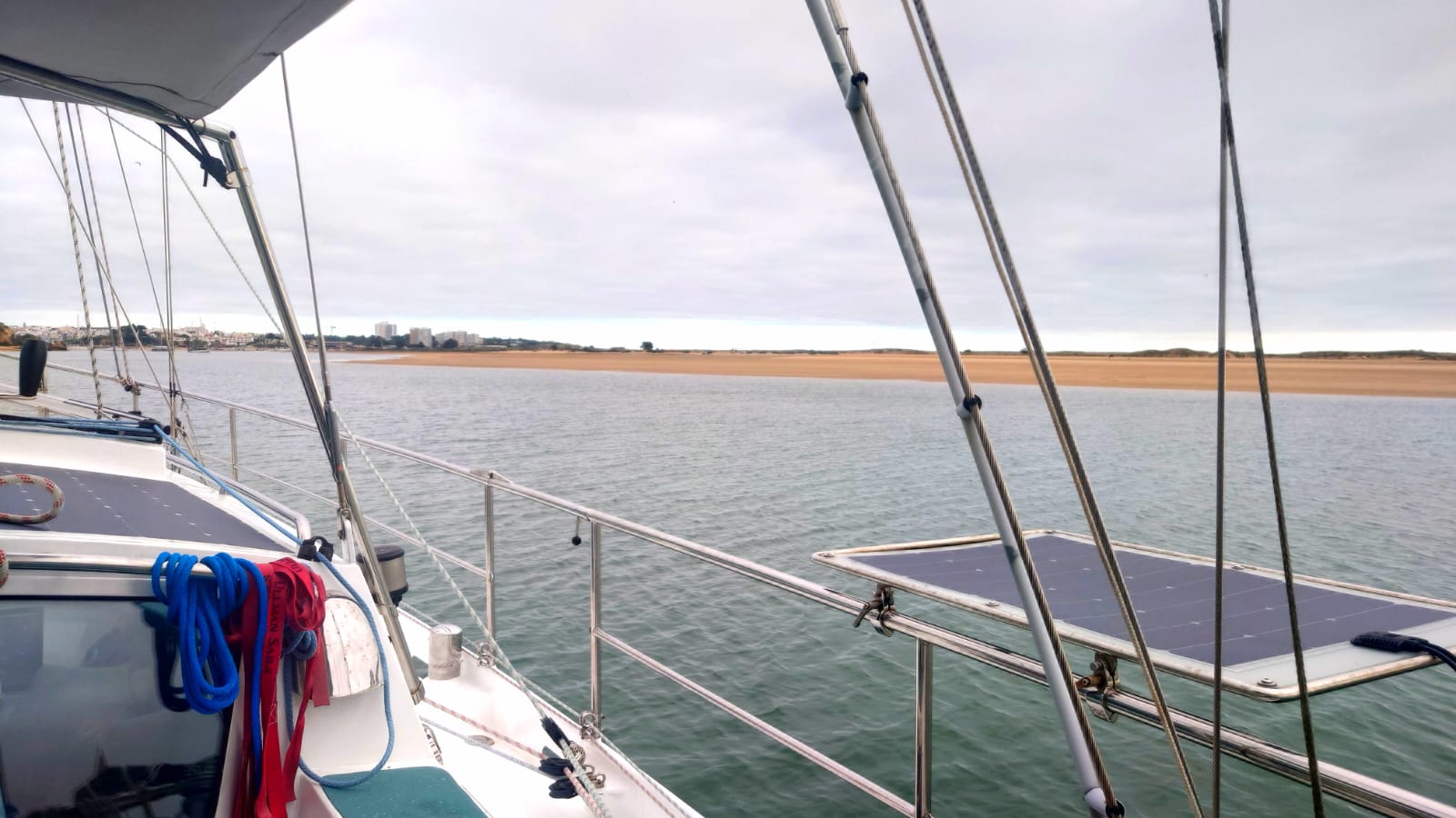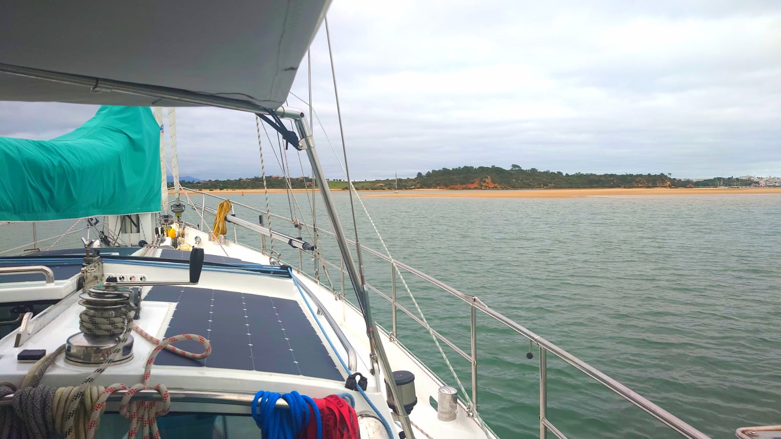 Anyway, up till that time we’ll have to be careful with our consumption of energy when we’re at anchor. We left the anchorage of Portimão with 80% SOC, motored an hour and arrived at Alvor with 90%. We cooked an extensive meal (Ottolenghi’s aubergine parmigiana, that serves us 4 days) and we went down to 66%. With a sunny day and a windy night we were back 90% again.