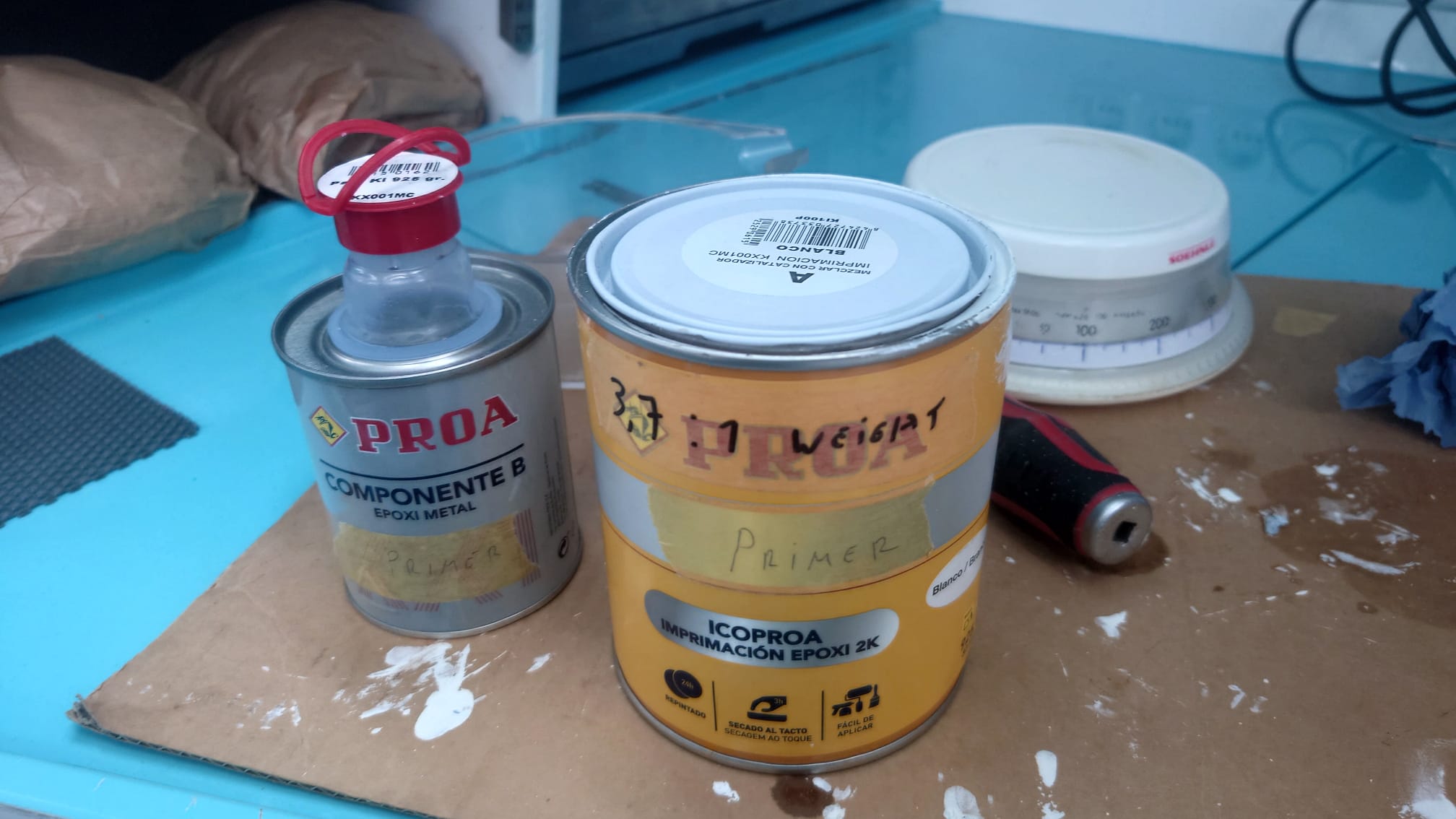 Since we ran out of epoxy primer that was bought in the Netherlands before we left, we have ordered a Spanish 2k primer on Amazon.