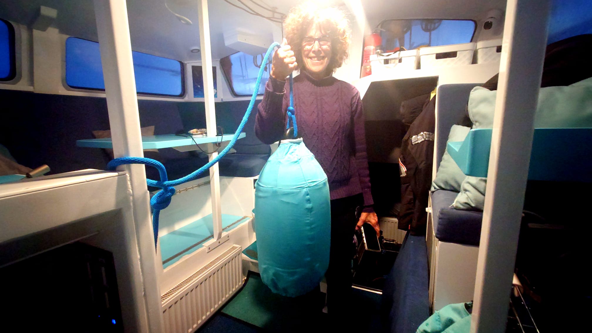 It takes her the whole day, readjusting and correcting the shape… This is no boat fender pajama, this is a boat fender gown! 😄