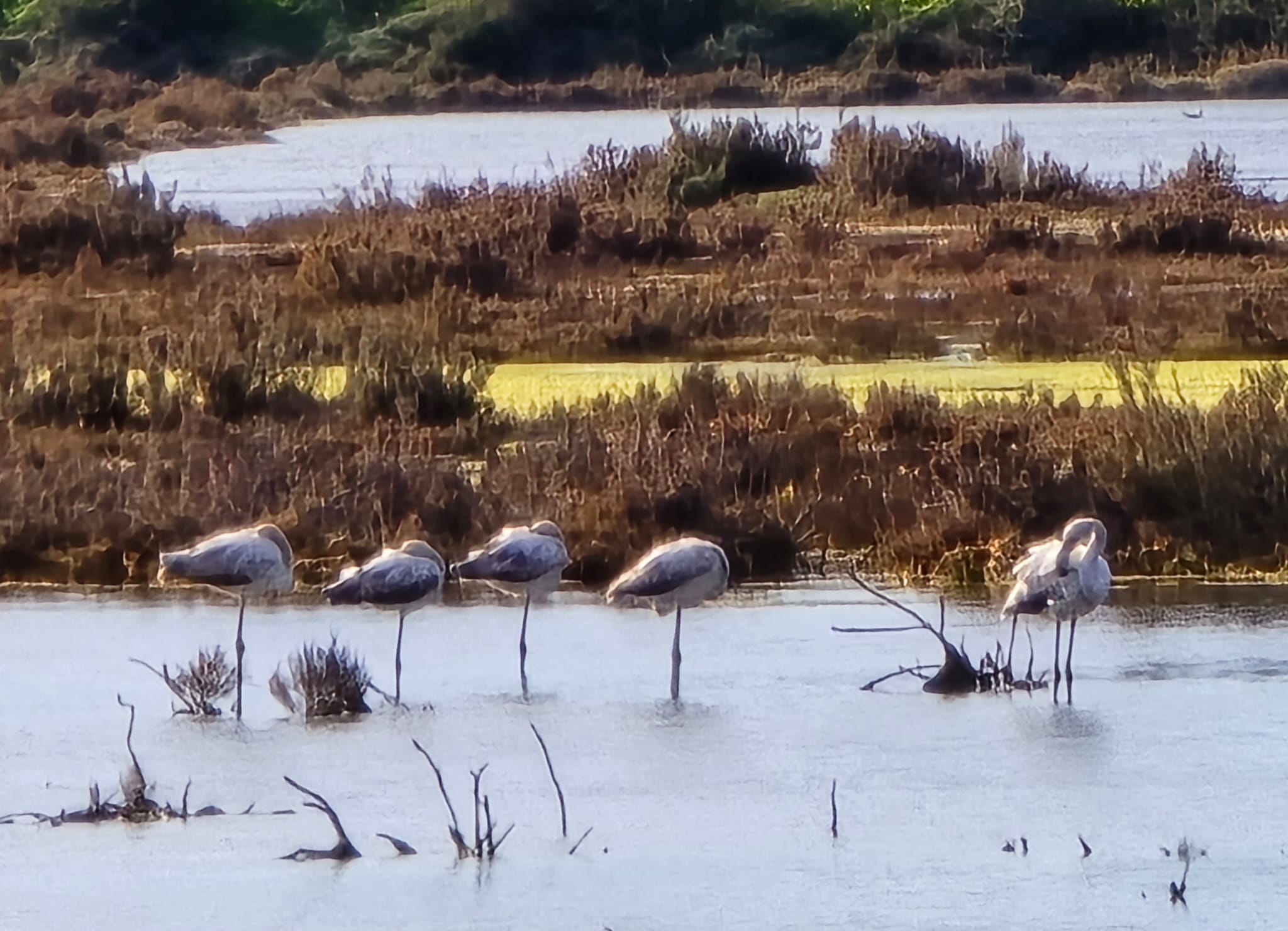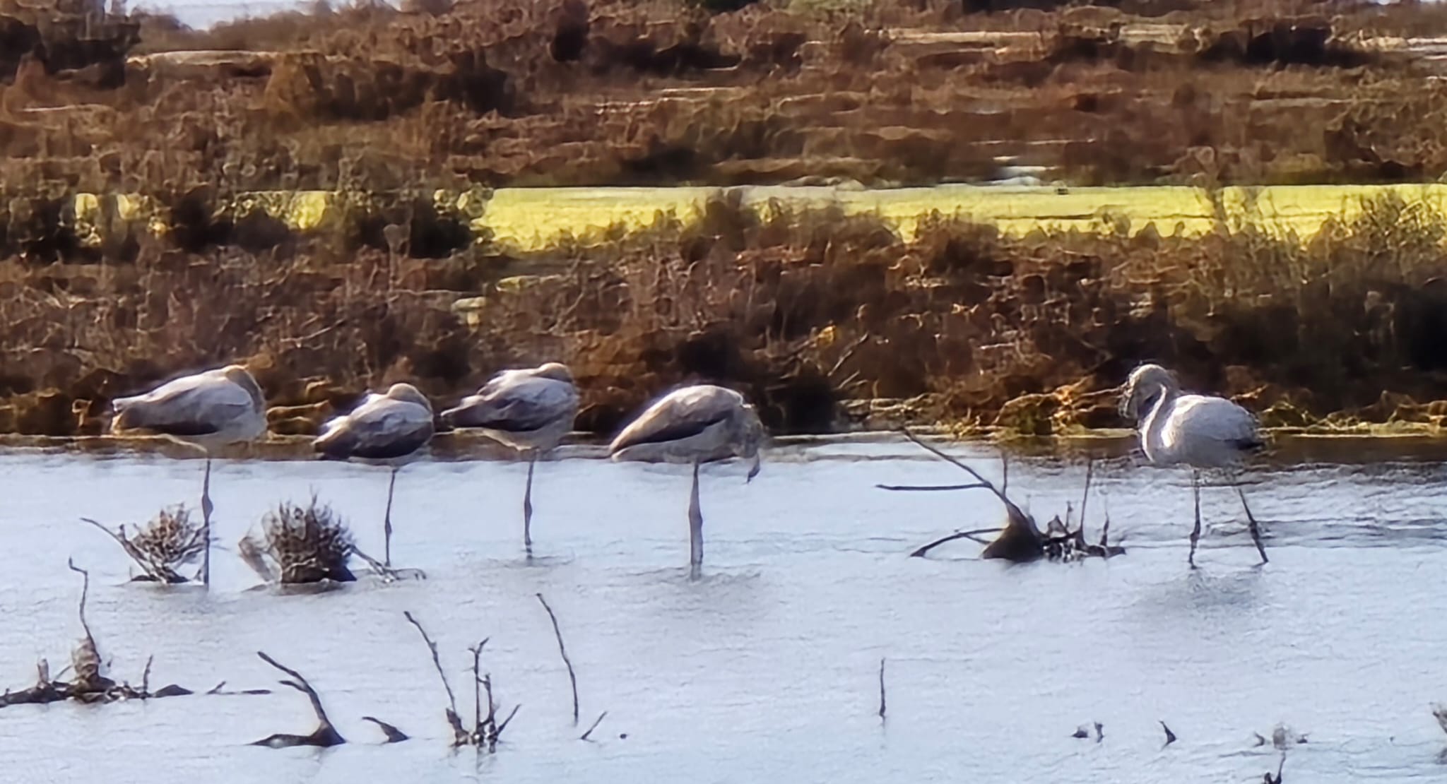 We see groups of flamingo’s but they are quite far away.