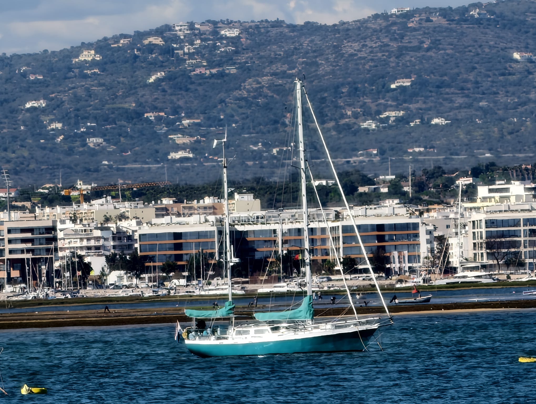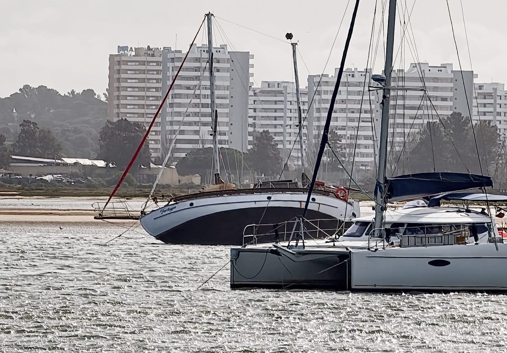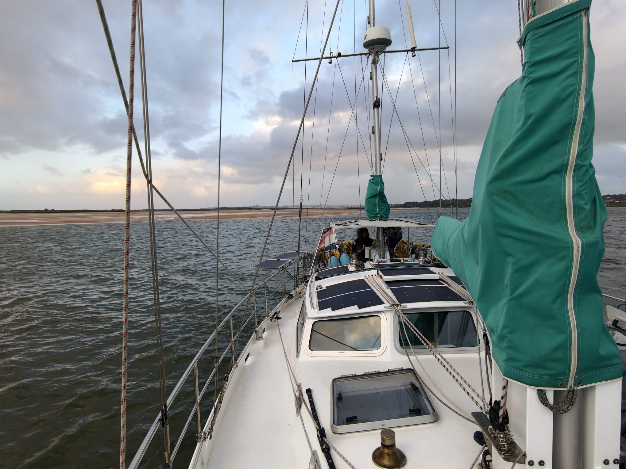 That’s why we decide to move to Alvor. That’s a very tranquil anchorage with no swell at all. It’s only an hour sail.