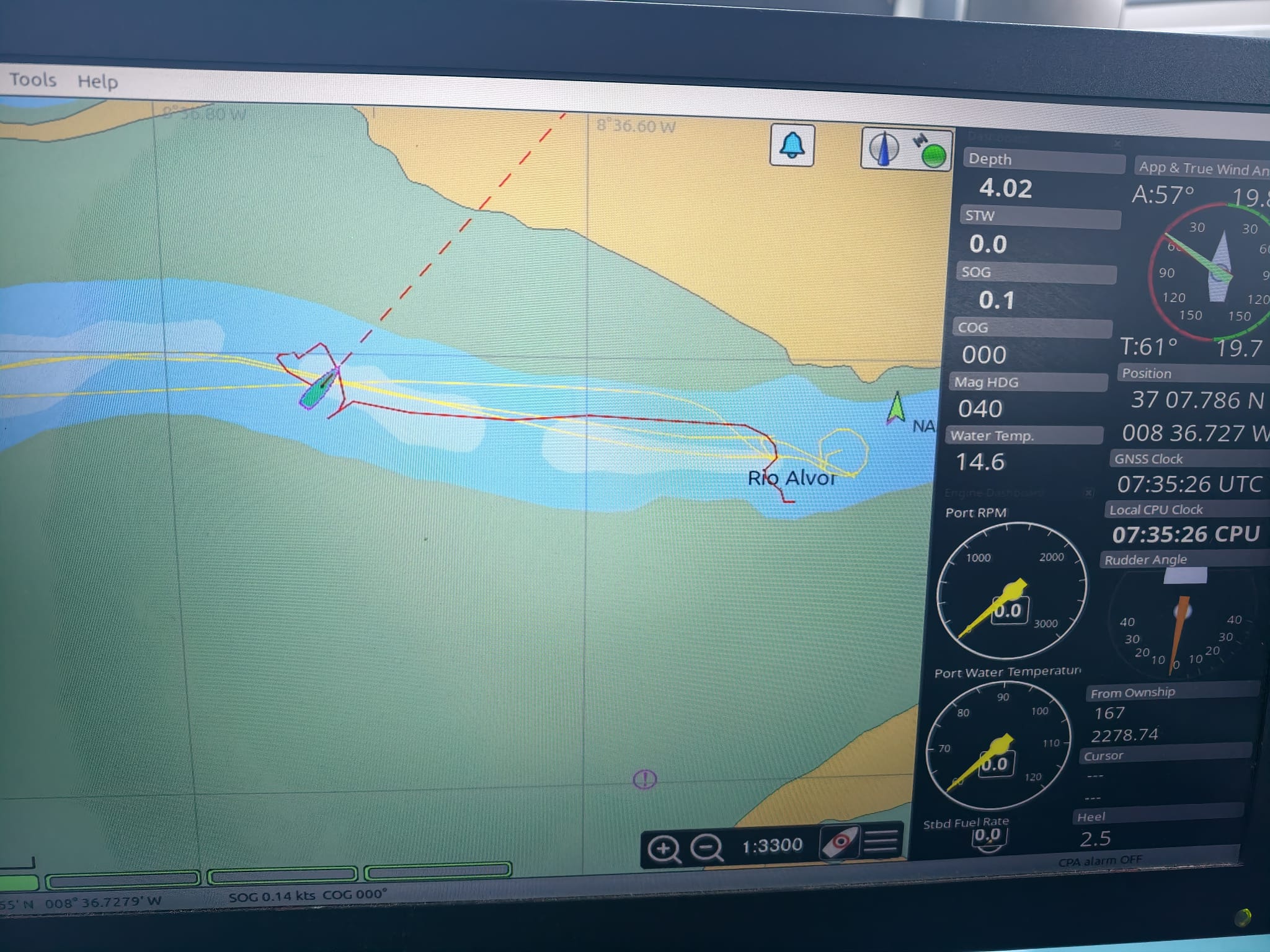 Today we have an early rise. At 0700h, we hoist our anchor and head out of Alvor. High tide was at 0500h and we have to get over the shallows.