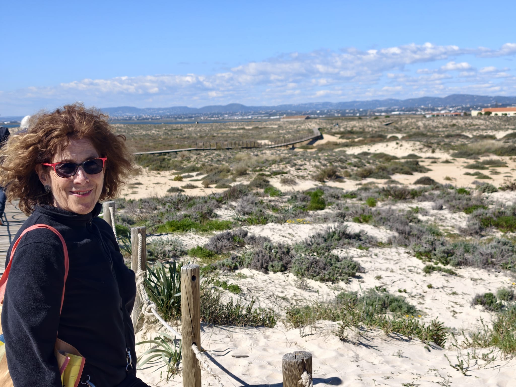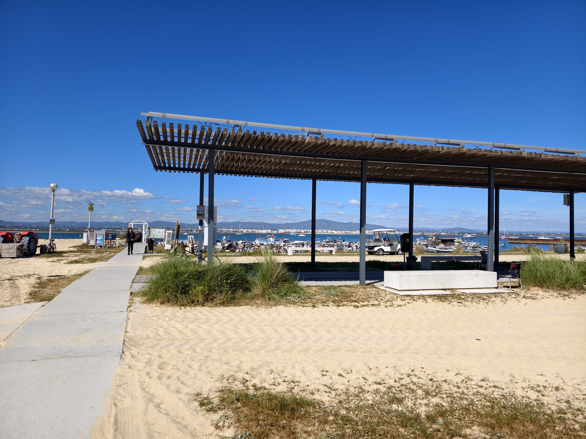 A view from the ferry terminal. Sher checks out the ferry timetable because she wants to go to Olhão and Faro tomorrow.