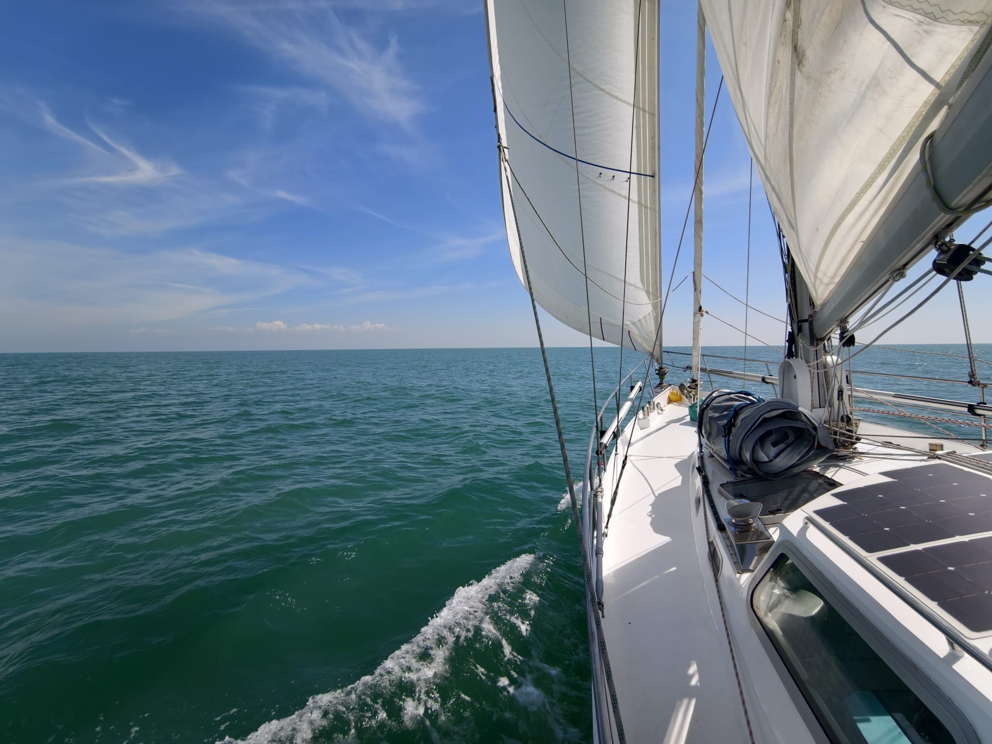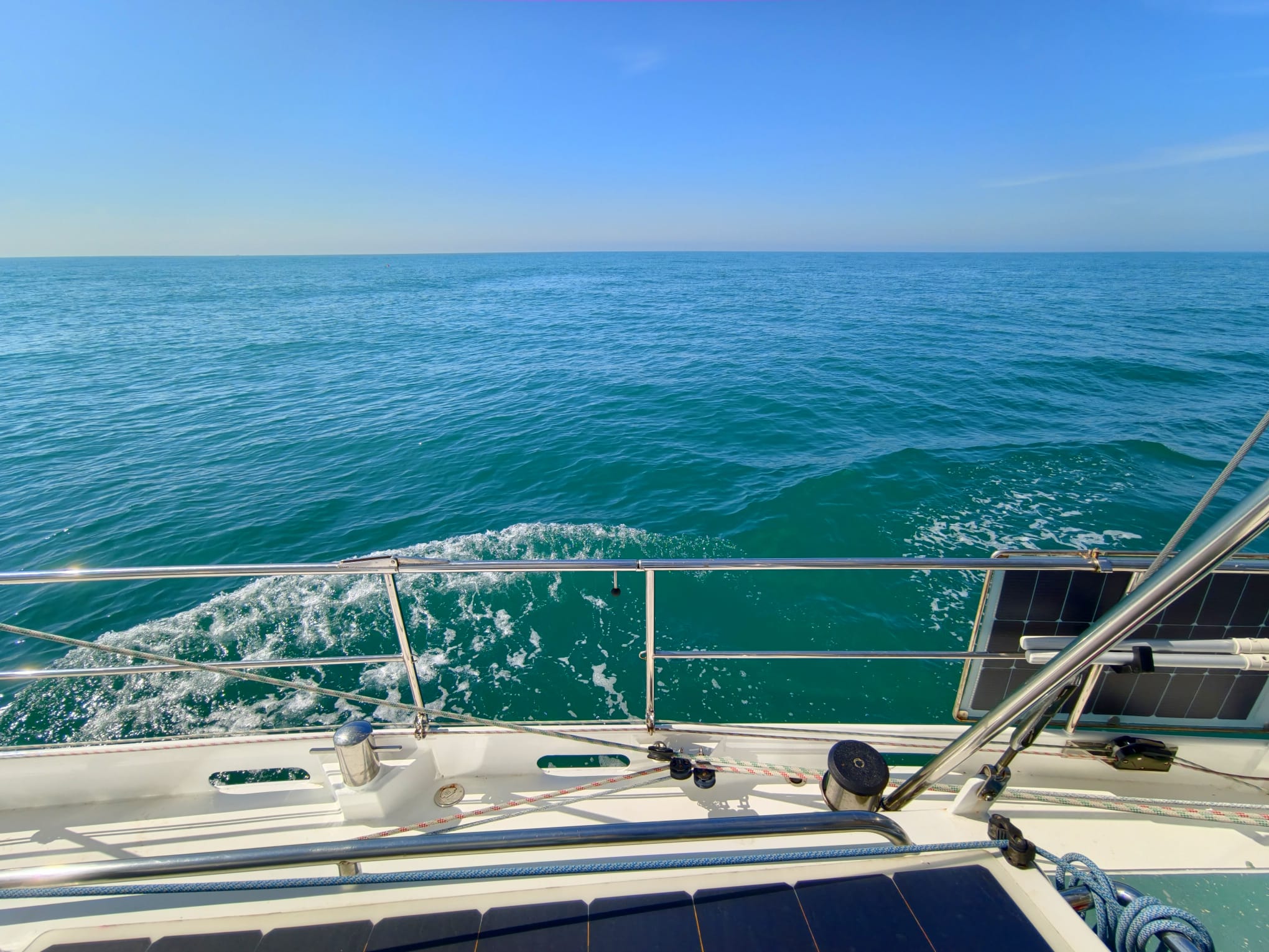 This is what they call “Champagne Sailing”. We glide along a flat sea ๐