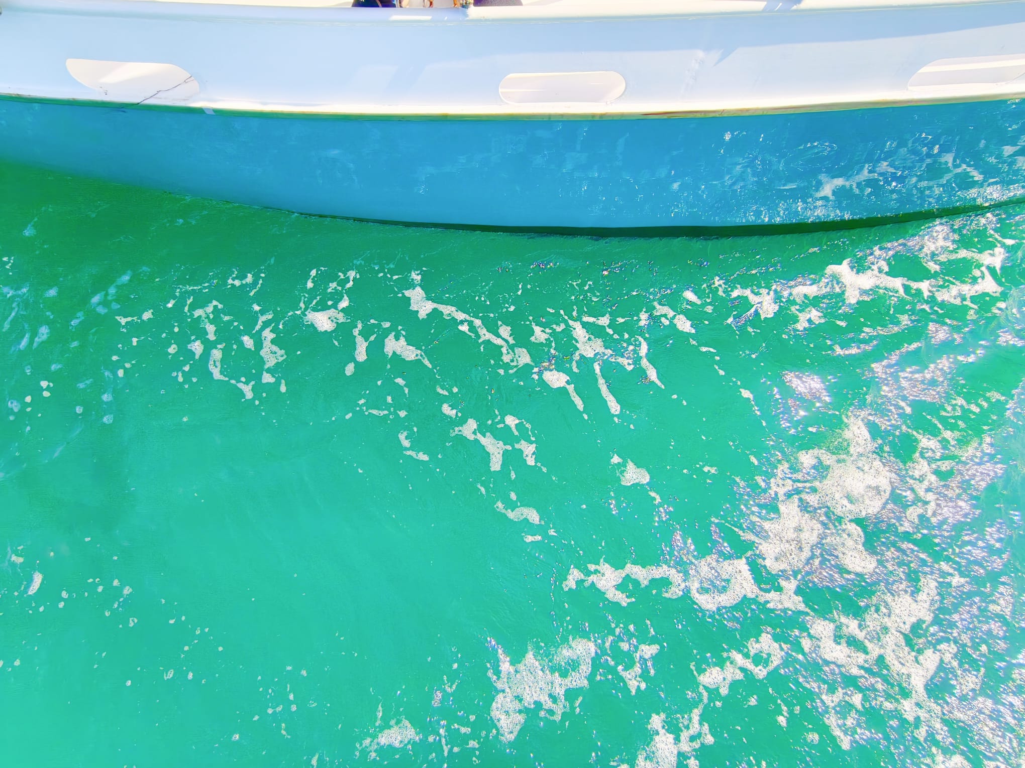 We decide to keep hovering in the soft breeze. There’s no current so that’s easy.
