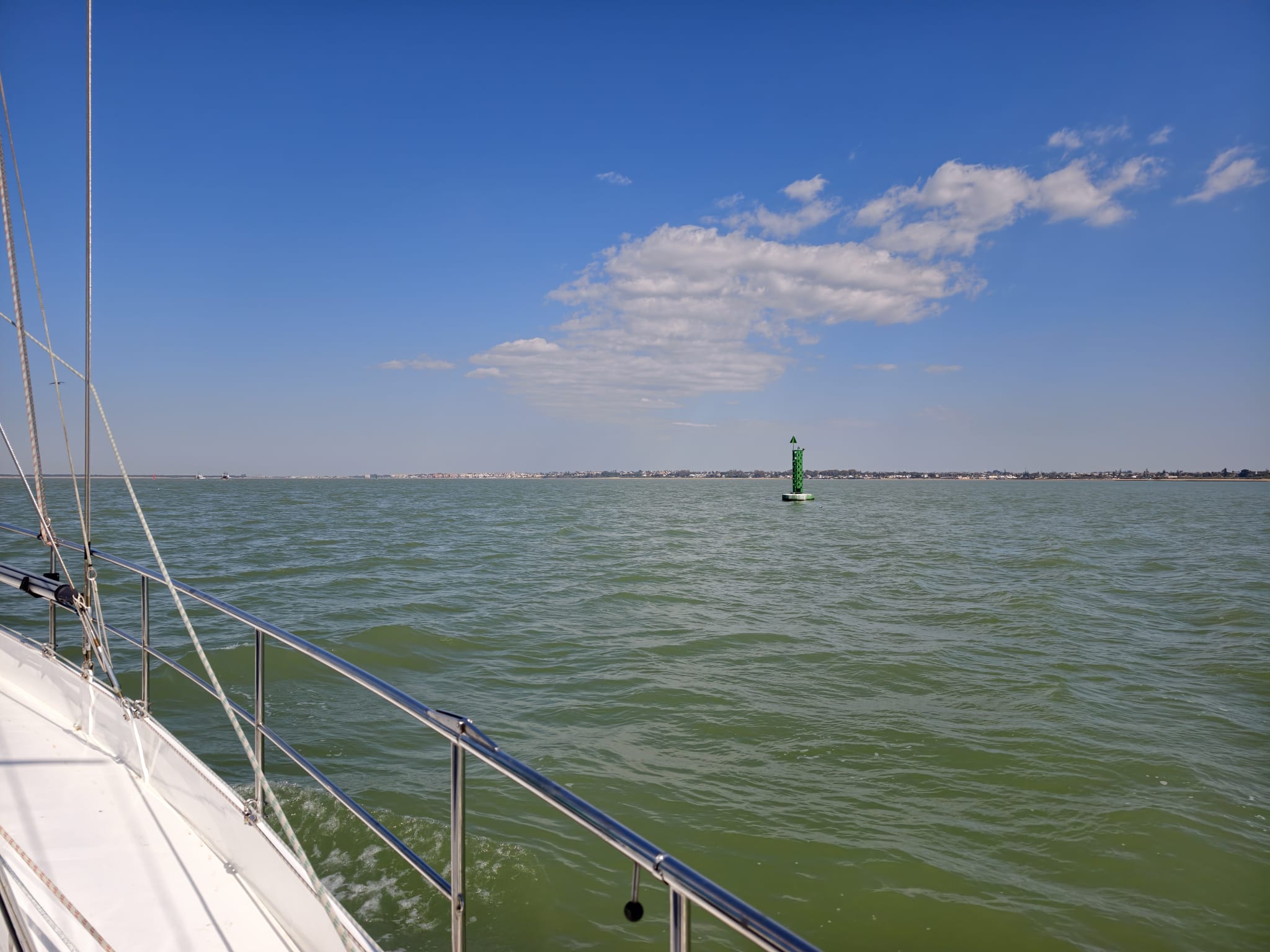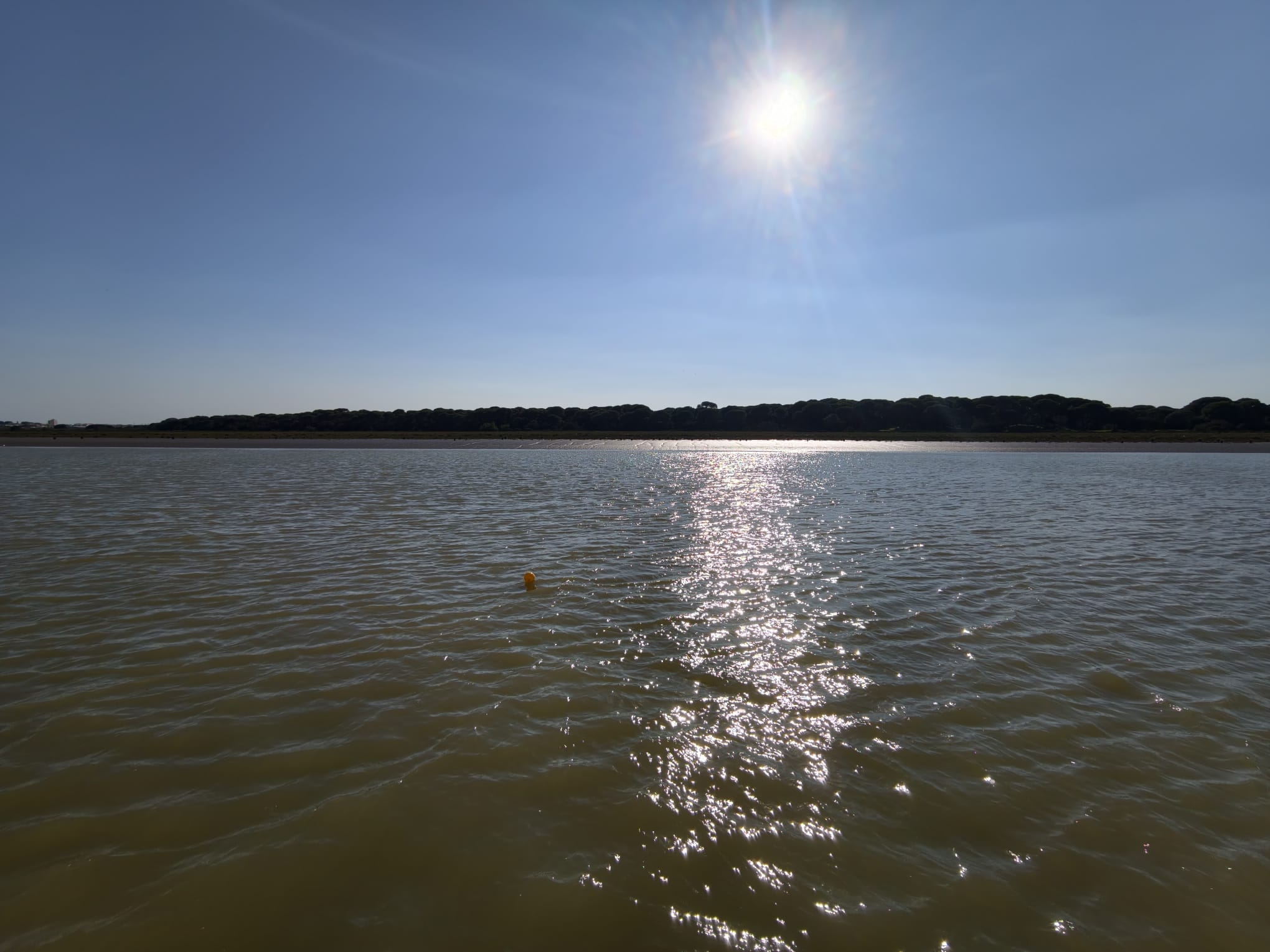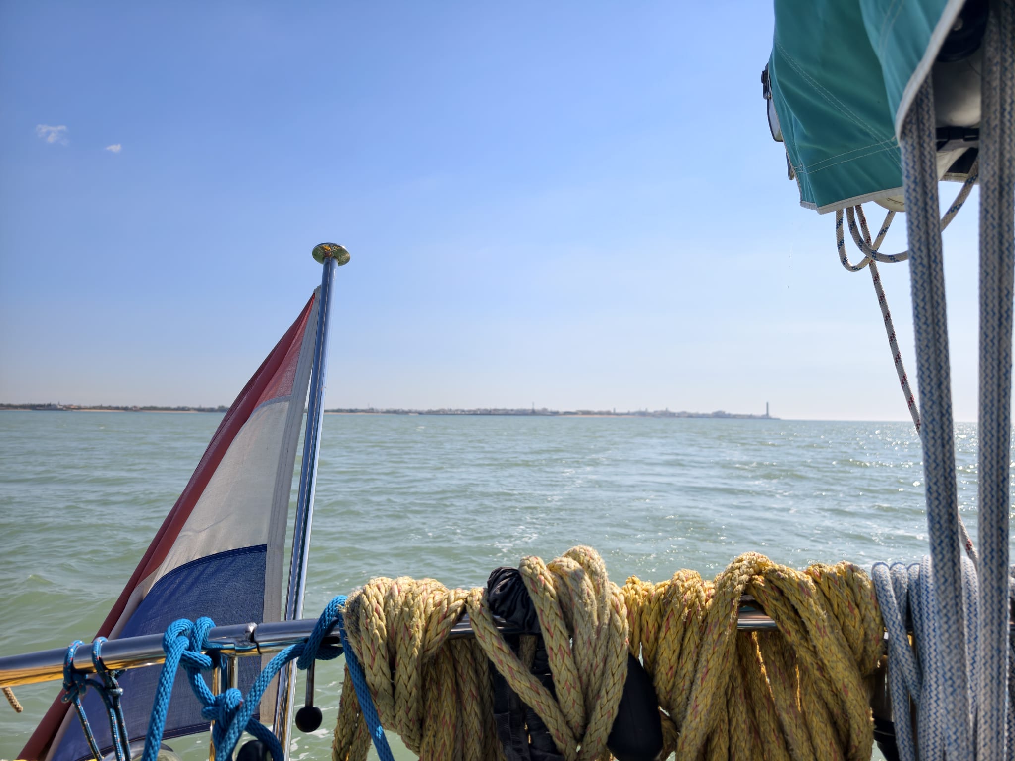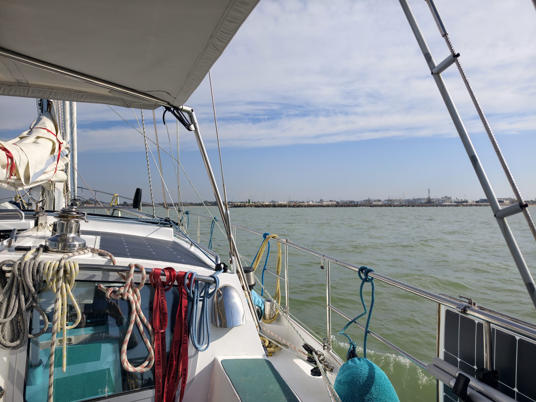 Chipiona at our stern. There’s almost no wind and the weather is gorgeous. We enjoy the little trip!