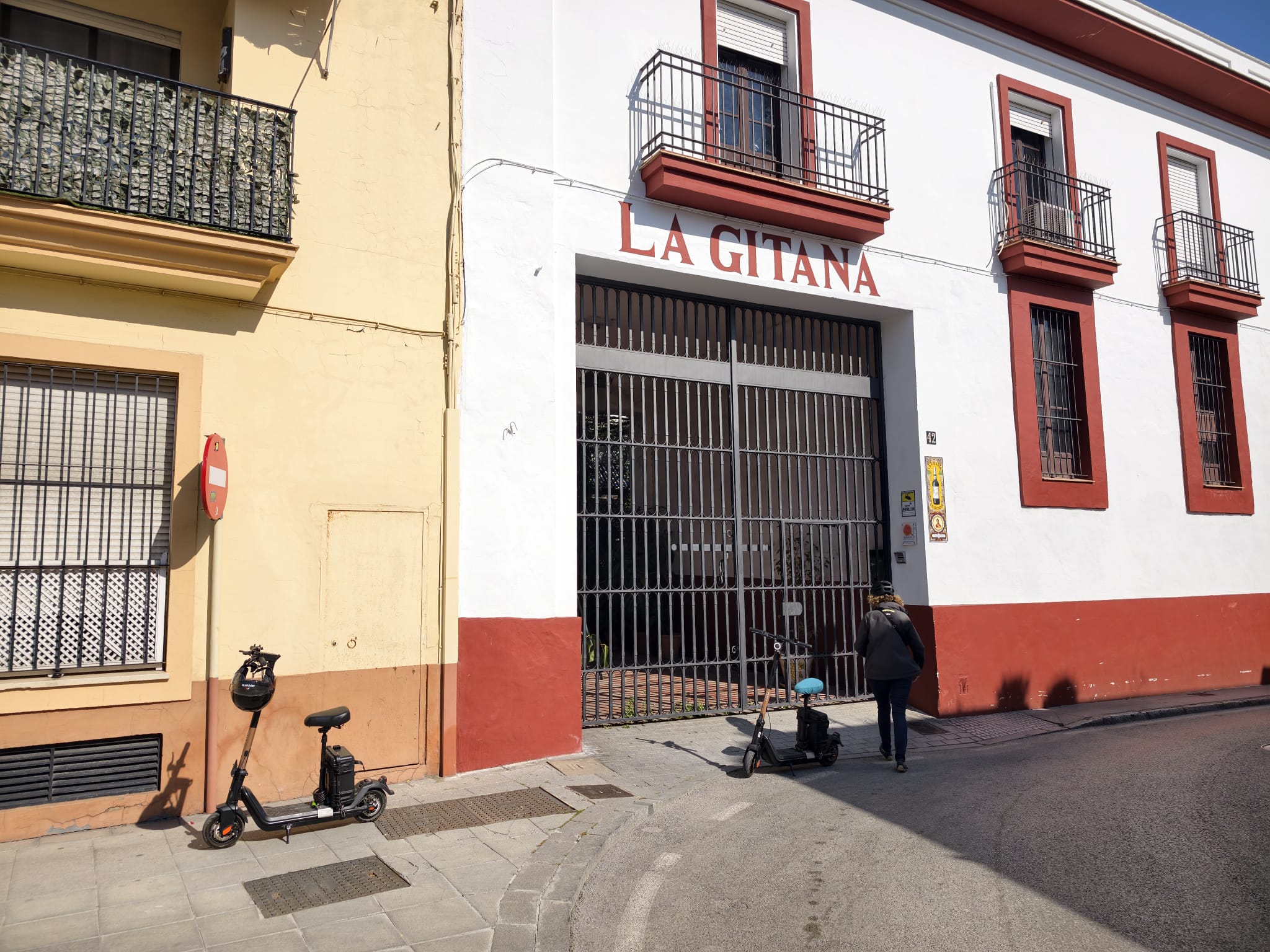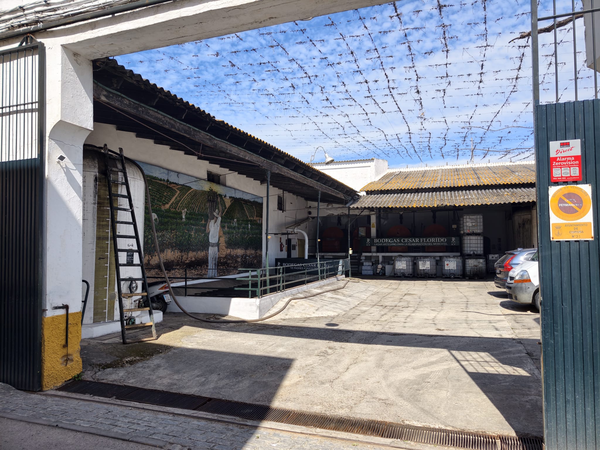 After a lovely scooter ride there, about 6km over a nice bike path through an agricultural area, we arrive at the Bodega de Hidalgo La Gitana. Our tour appointment is at 11 and they’re still closed. We have to wait 10 minutes.