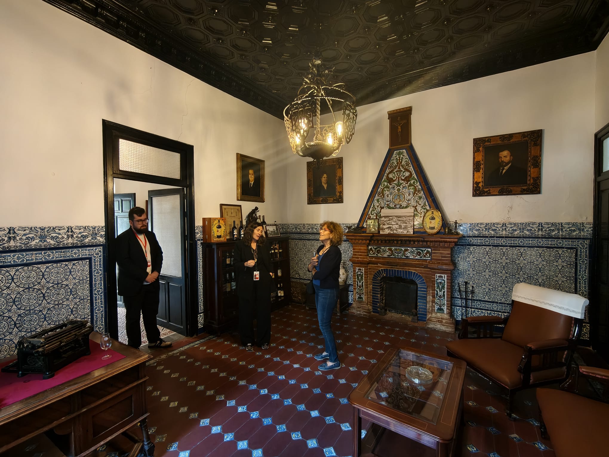 We are welcomed with a glass of a very light Sherry. We are the only guests today so this will be a private tour ๐. We’ve said it many times before but we’re always so happy to be sailing off-season! In summer, it’s packed here! Seeing their facilities, they can easily host a 100 people per tour.
