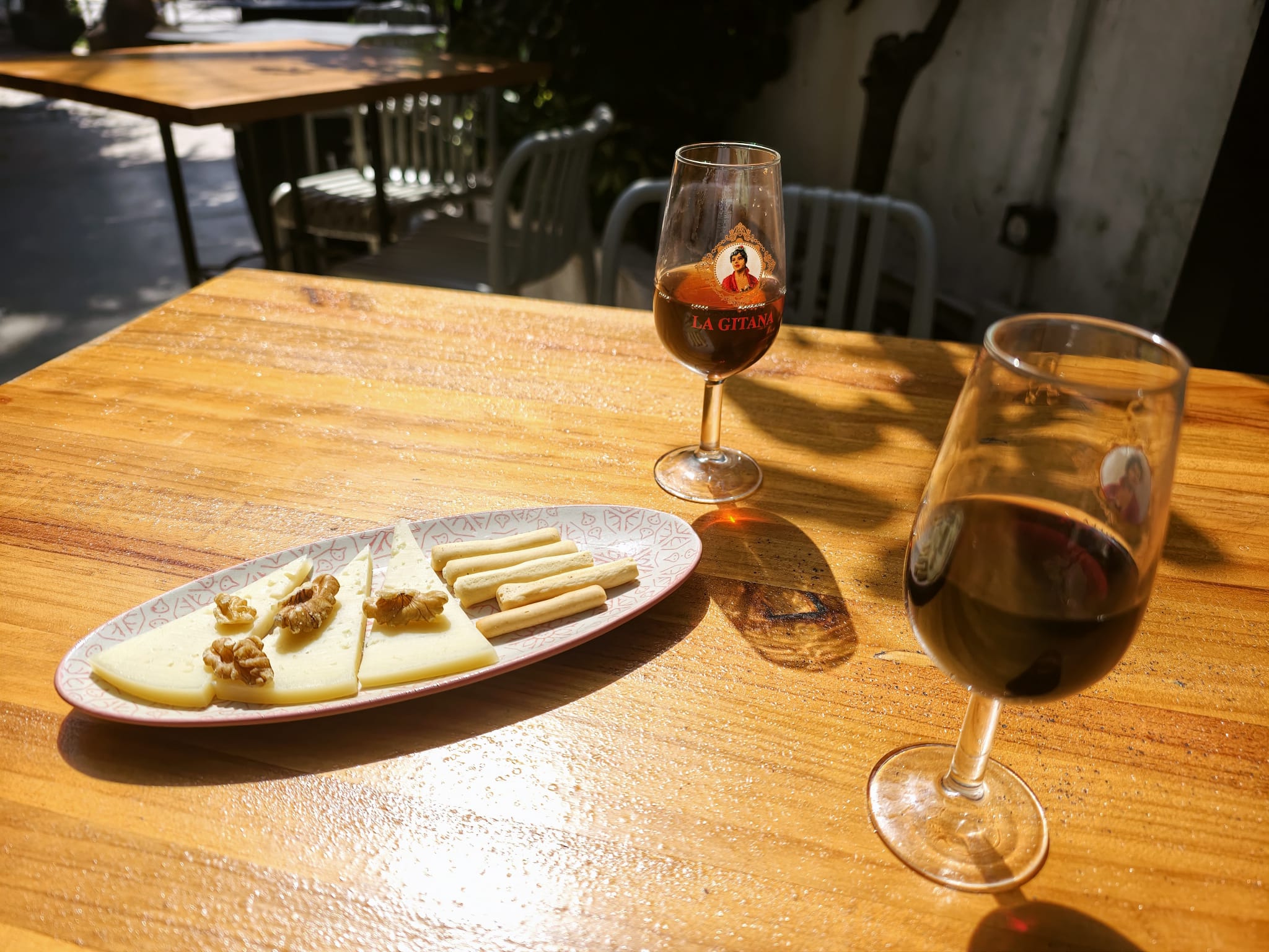There’s a kiosk where they sell Sherry from the cask. You bring your own bottle and they fill it. Sher has been here in 2020 so she knew about this and brought 2 of our water bottles!