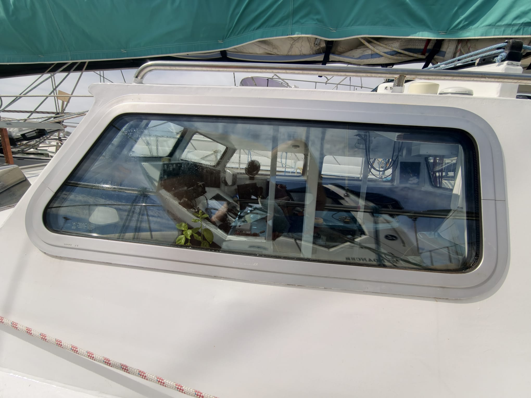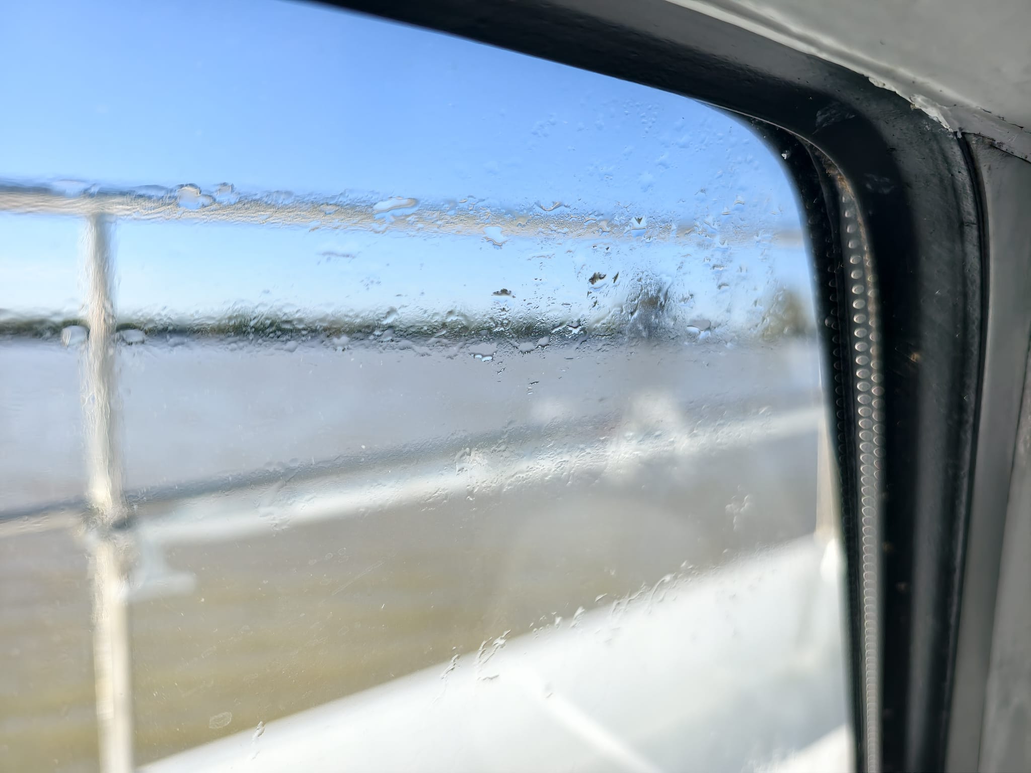 We have an issue with one of our deck salon windows. They are very seaworthy double-paned glass: 10mm hardened glass on the outside and 6mm on the inside. But now there’s condensation between the 2 glass panes. That means that the seal between the panes is leaking and (moist-) air enters between the panes.