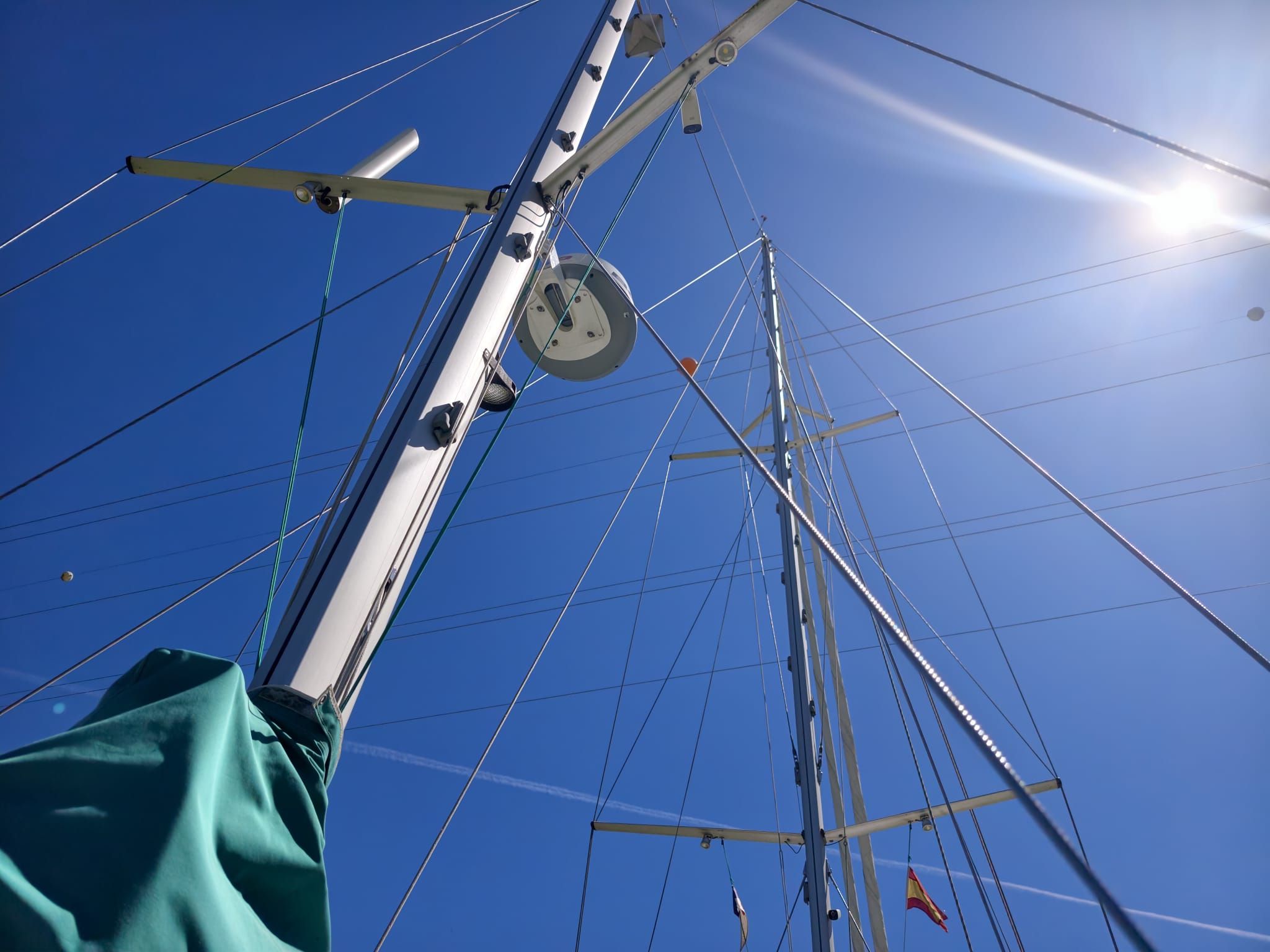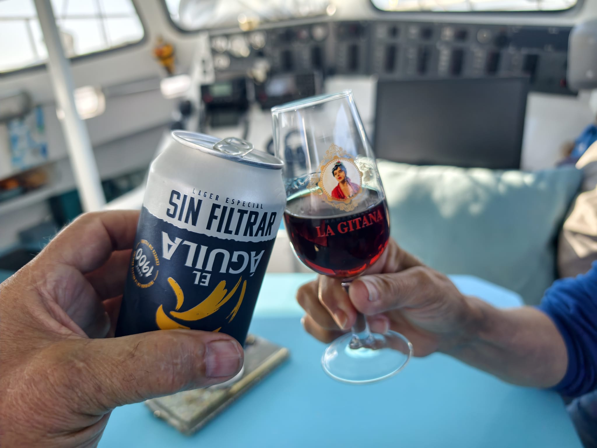 An hour before we reach reach Chipiona, the wind is at our stern and we don’t have much speed any more. So, Mighty Mitsu brings us in.