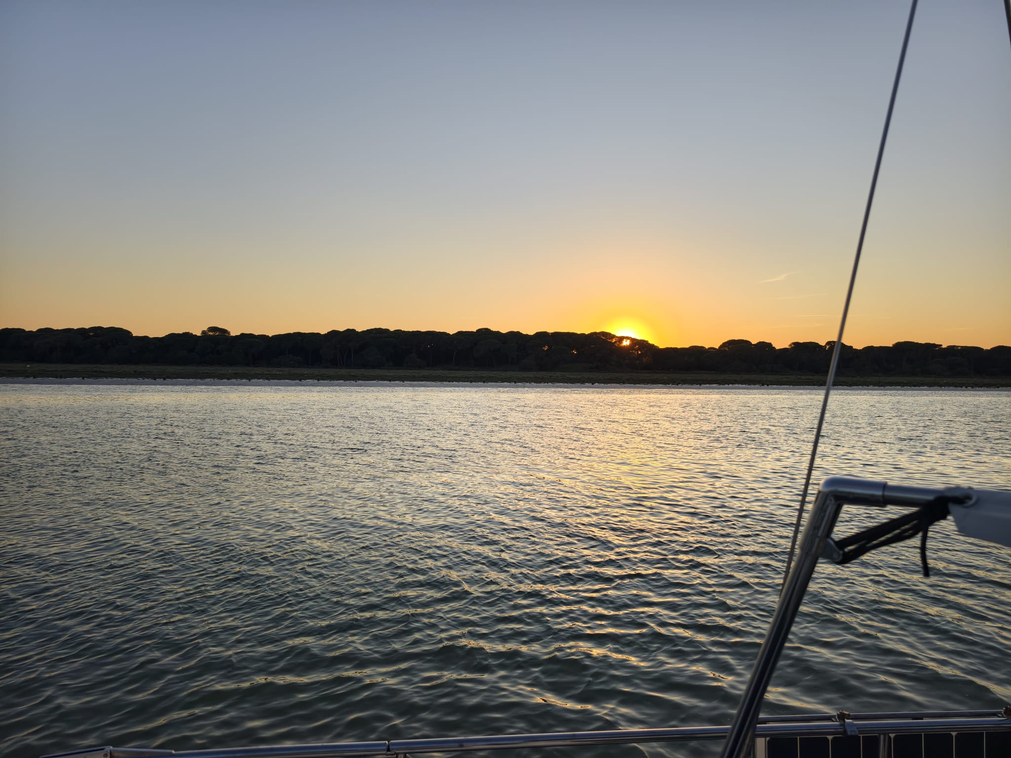At 1530h we leave the marina. It’s low tide and we should have a favorable current into the Guadalquivir river. We want to anchor at the entrance for the night before we sail up river to Sevilla.
