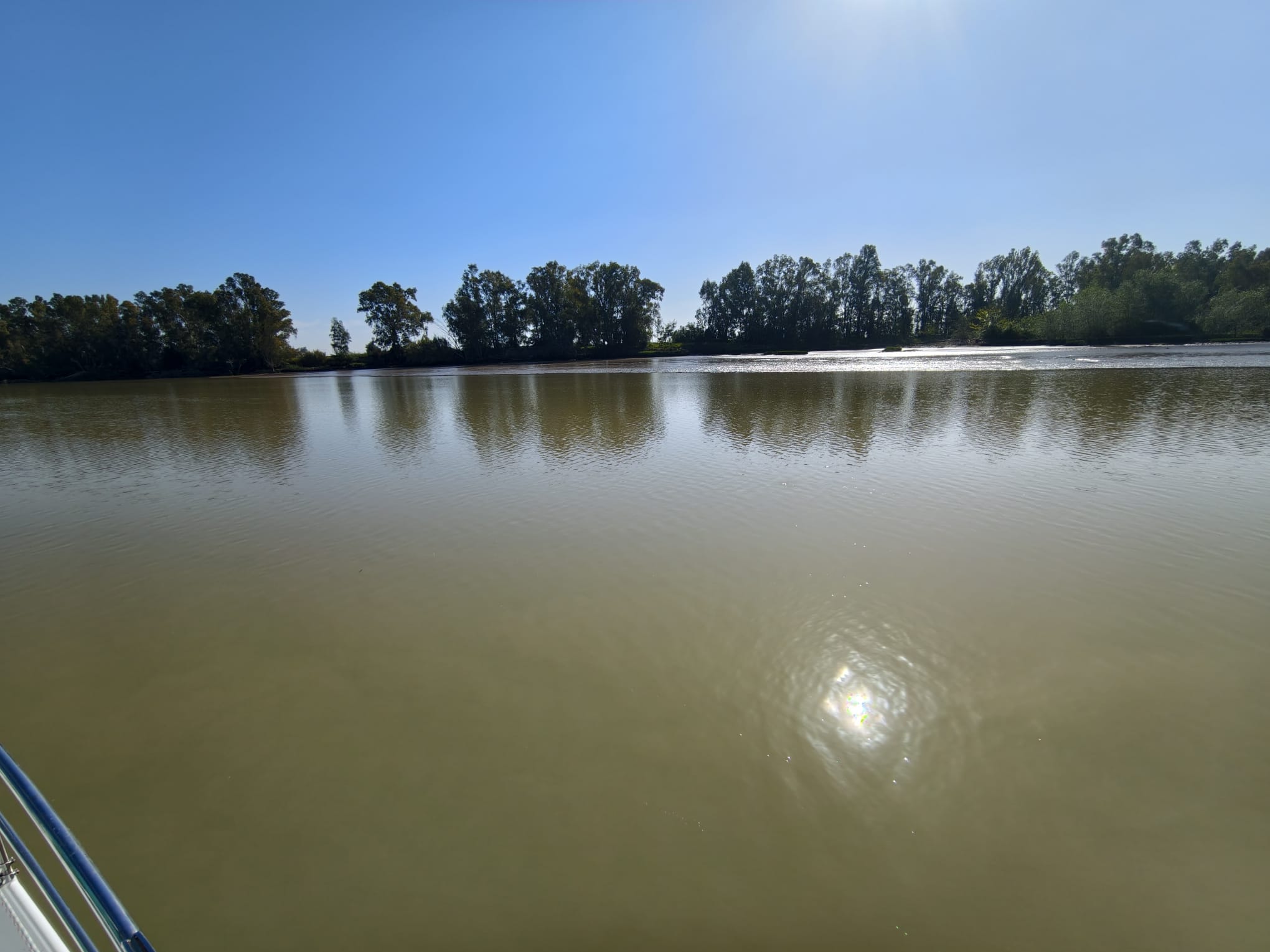 This river is extremely dirty. It has a strong smell of washing powder. It discharges the sewage from many big cities and numerous towns along this 576km long river, from Cordoba to Sanlucar de Barameda… They have sewage treating plants of course, because the water doesn’t smell like poop but sewage treating plants can only remove organic substances, not washing detergents. That’s why there’s no life in this water. No fish, no water birds, no water plants, dead trees on the riversides.