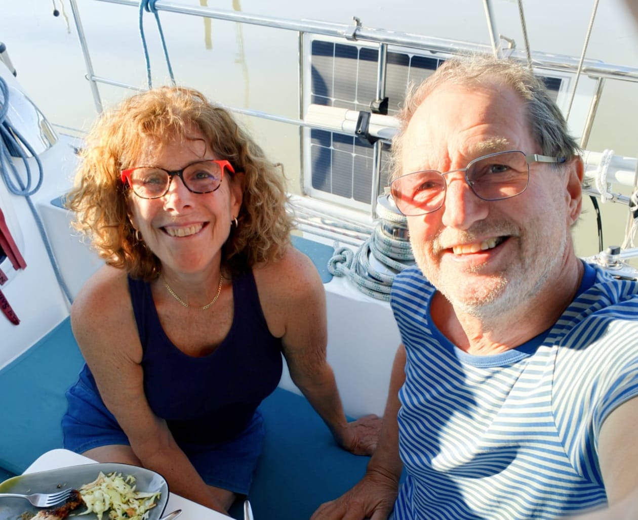 It’s a lovely warm day and we have dinner in t๐ซกhe cockpit! ๐