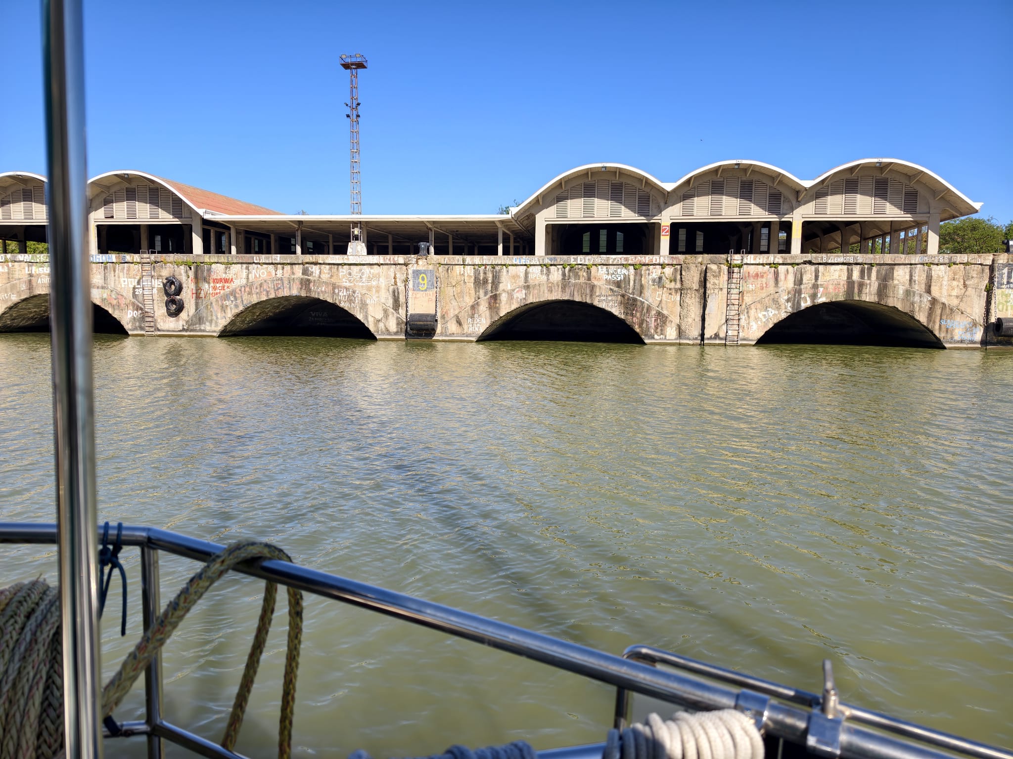 We pass the lock that leads to the canal in Sevilla and continue on the Guadalquivir. We’ll be back here Monday.
