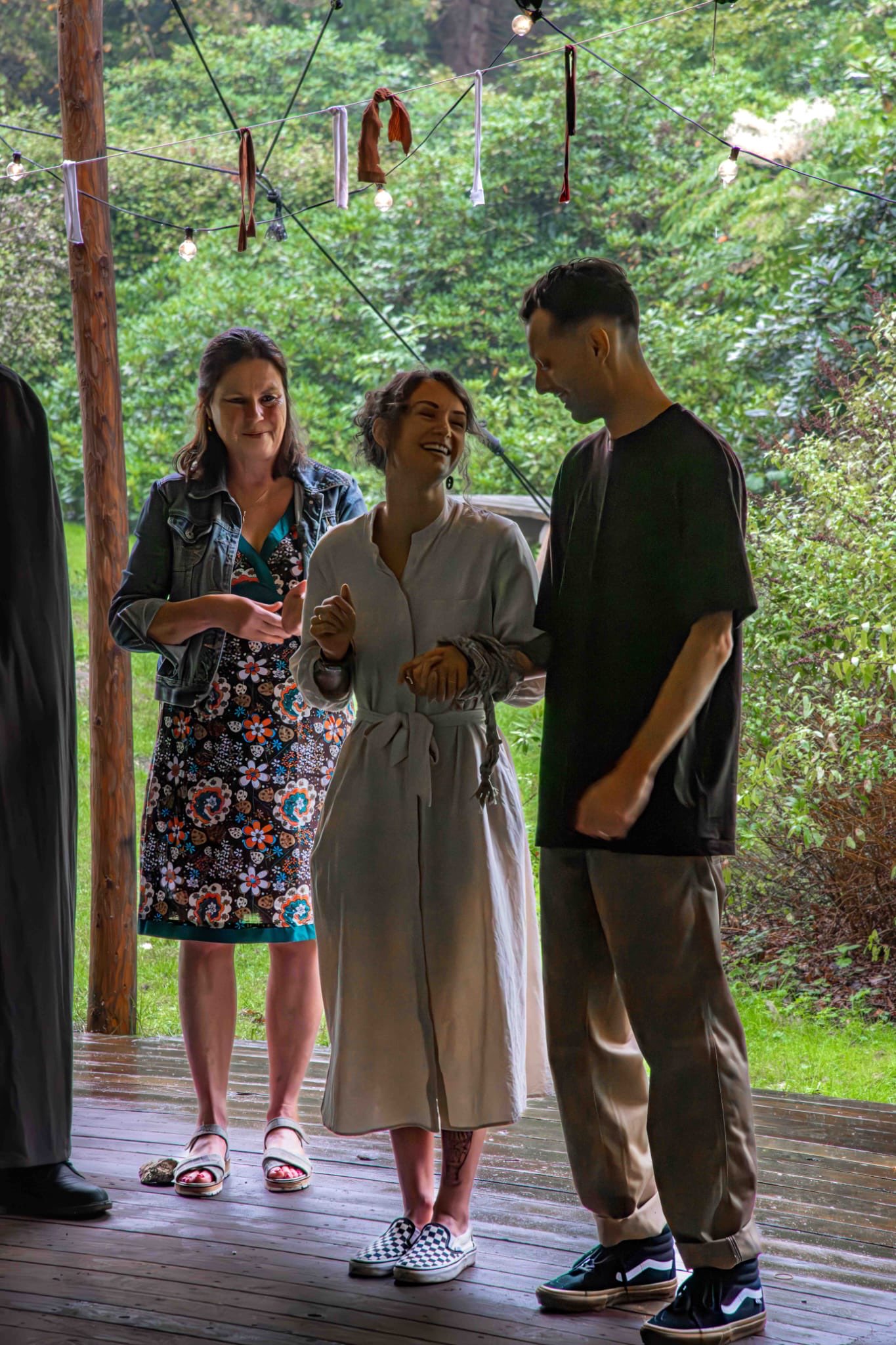 Next, we do some more shopping at a big supermarket and at “Hanos” (professional restaurant supply store) for things we can’t buy in Portugal. Then, we drive to Harderwijk, our next B&B. When we get there, it starts raining. Pouring. But, the temperature is still nice. After we’ve settled in the B&B, we drive to Ede, where the hand fasting celebration takes place. The place is in a deep forest and it takes us a while to find it, in the pouring rain.